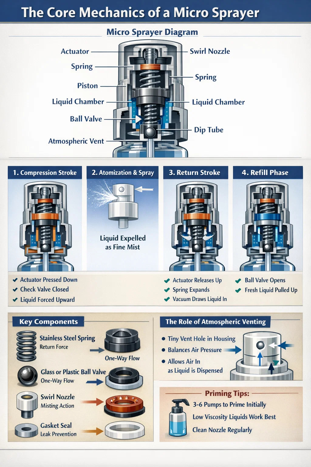 الإجابة المباشرة: الميكانيكا الأساسية لـ أ البخاخ الصغير